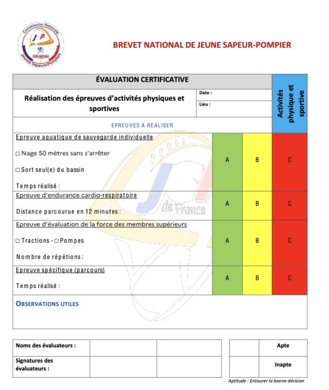 Le Brevet National des Jeunes Sapeurs-Pompiers